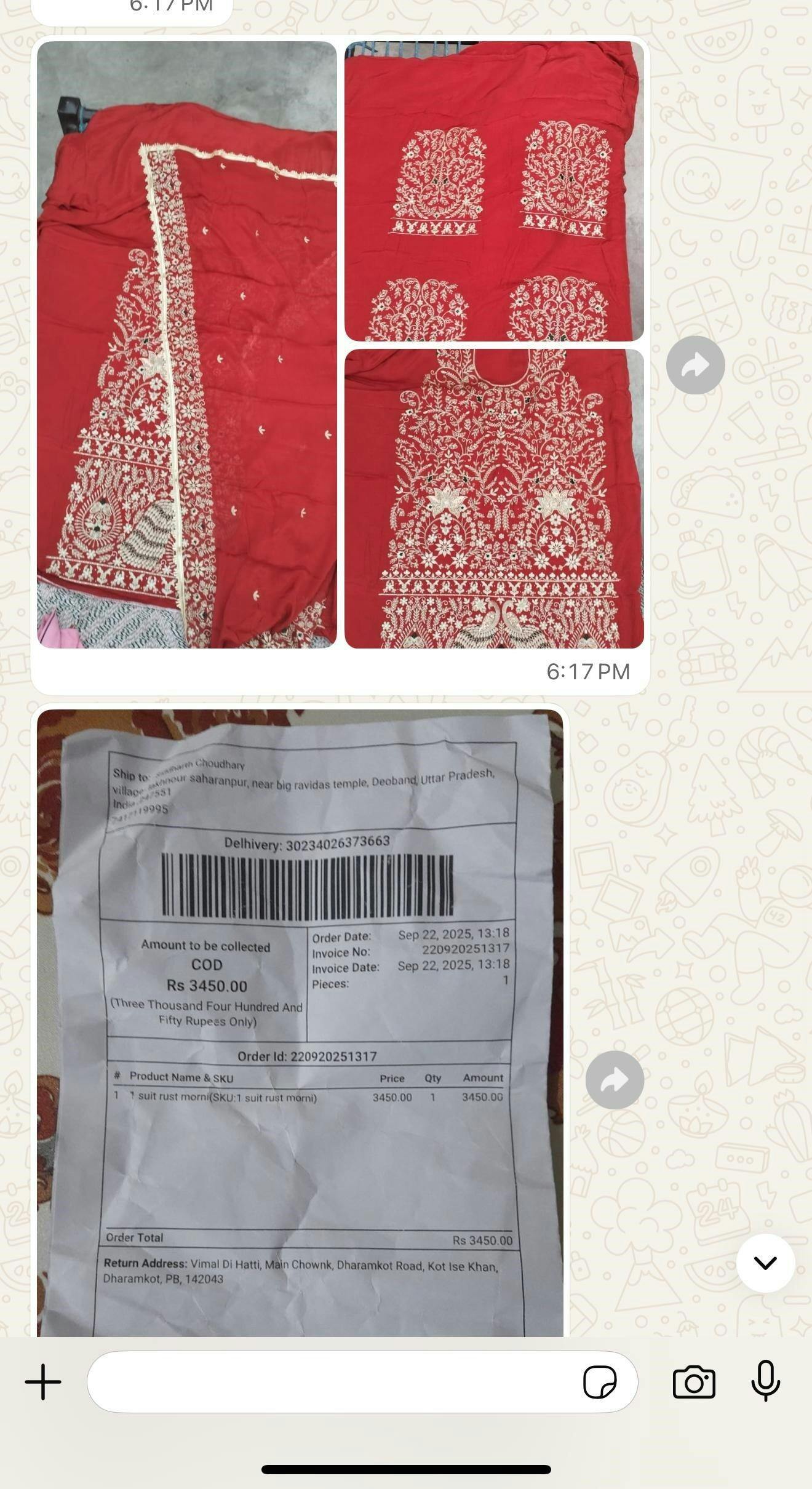 Complemented by a 2.25 metre Pure Chinnon Dupatta, finished with Punjabi-style gota on all four sides, this ensemble is a true symbol of refined craftsmanship and festive elegance. Perfect for weddings, festive occasions, and celebrations where you wish to make a statement.